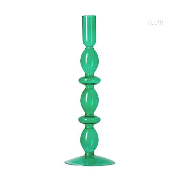 Add some whimsy to your bar cart or bar cabinet with this colorful glass candlestick holder. Mix and match with other pieces to create a unique set that will liven up any space. Please note: Candles not included.